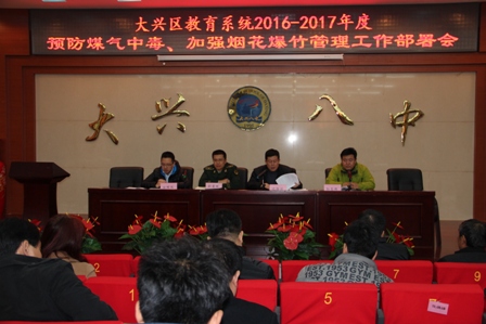 为进一步固化夏季消防检查工作成效,切实加强今冬明春火灾防控工作,坚决预防和遏制重特大尤其是群死群伤火灾事故发生,确保重要节日、重要活动期间教育系统安全稳定,2016年11月8日上午,大兴区教育系统召开今冬明春火灾防控部署会,支队监督员应邀出席会议,100余位学校保卫干部参加会议。