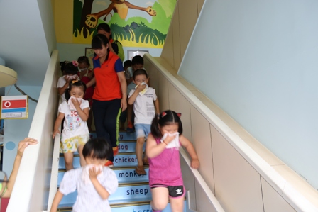 为提高辖区少儿安全防范、逃生、自救、互救意识,6月29日,观音寺街道安全科组织大兴区蓝天高展国际幼儿园全体师生开展消防安全培训及应急演练。在此次活动中,全员认真听取安全培训,并高度配合应急演练,提高了师生应对紧急突发事件的能力,取得了圆满成功。通过此次进学校开展消防安全培训及应急演练活动,加强师生应付突发事件的防范措施,提高了实际应对和处置突发安全事件的能力,更进一步增强师生的安全意识,增进师生之间的患难真情,真正掌握了在危险中迅速逃生、自救、互救的基本方法,达到了安全培训及应急演练的预期目标。